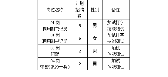 ③資格初審合格的考生,報(bào)考01、02崗聘用制書(shū)記員的考生,同步進(jìn)入考場(chǎng)進(jìn)行打字技能測(cè)試;報(bào)考03、04崗輔警的考生,同步進(jìn)入體測(cè)場(chǎng)地進(jìn)行體能測(cè)試。